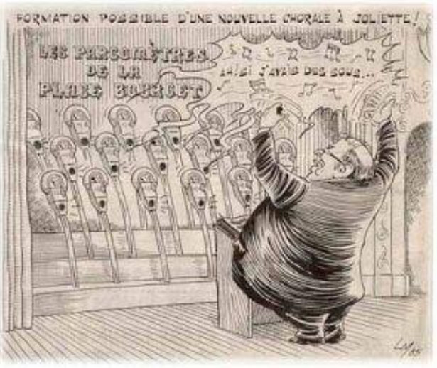 Caricature du père Fernand Lindsay, fondateur du Festival de Lanaudière, à Joliette.